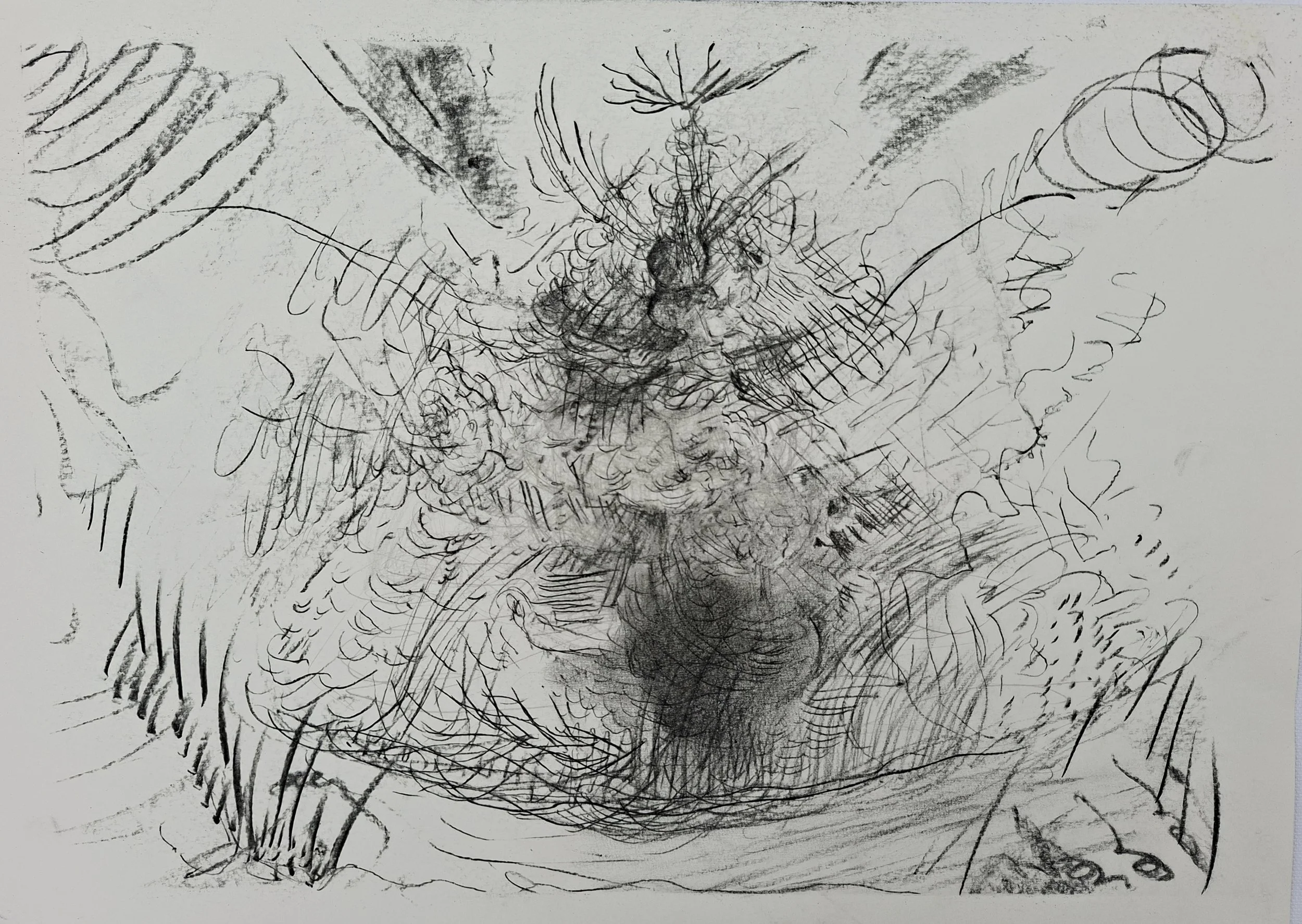 Automatic drawing in charcoal, in the dark
